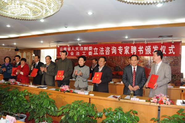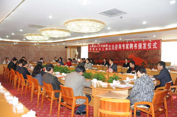 晏友琼常务副主任从地方立法的重要地位,充分发挥咨询专家的重要作用,发挥专家作用的途径和方式三个方面阐述了新形势下地方立法工作必须积极适应云南经济社会的跨越式发展,必须不断拓展开门立法的渠道,必须充分利用丰富的立法工作社会资源。并就如何有效推进科学立法、民主立法的进程,如何建立和完善地方立法工作专家咨询制度,提出了明确要求。她说,省人大常委会对各位专家非常尊重,对专家咨询库工作非常重视。希望全体受聘专家不负重托,不辜众望,充分发挥各自的作用,充分显现各自的才能,积极地参与到人大的立法活动中来。她在会上强调,法制委、法工委一定要虚心向专家们学习和请教,进一步完善专家库的运行机制,逐步完善专家库的管理工作方式方法,积极探索专家参与立法的有效途径。并力争在本届人大常委会任期内建立起省人大常委会的立法咨询专家库。