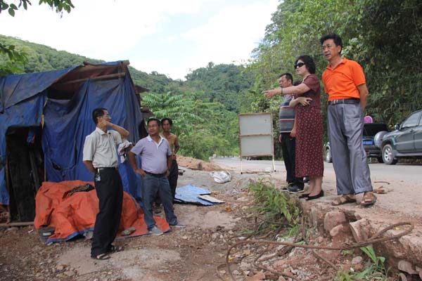 5月19日上午,调研组一行实地走访和考察了勐腊县勐伴镇河边村委会、金厂河村委会和曼里村委会扶贫开发和整乡推进项目工作进展情况。调研组强调,扶贫开发是云南全面实现小康社会的一项重要任务,是统筹城乡协调发展,破解“三农”难题的重大举措,是惠农惠民的人心工程、希望工程。整乡推进是扶贫的重要平台,突出资源整合,整体推进,集中资金,着力实施好群众的安居温饱、产业发展、社会事业发展、基础设施建设等一些重大的民生工程,解决好贫困地区的经济社会发展问题,提升广大群众的文明素质。在曼里村调研时王智副主任看到了整洁、干净、规范、漂亮的村容村貌之后,深情地对村干部们说:曼里村是扶贫开发和整乡推进项目最大的受益者,在新农村建设上走在了全县的前列,建议下一步要重点抓好以下三个方面工作:一是要在村容村貌可持续治理上下功夫,努力提升村民的文明素质;二是要在培植增收产业上下功夫,努力增强持续发展后劲;三是要大力加强班子建设,努力增强发展的凝聚力和引领力。