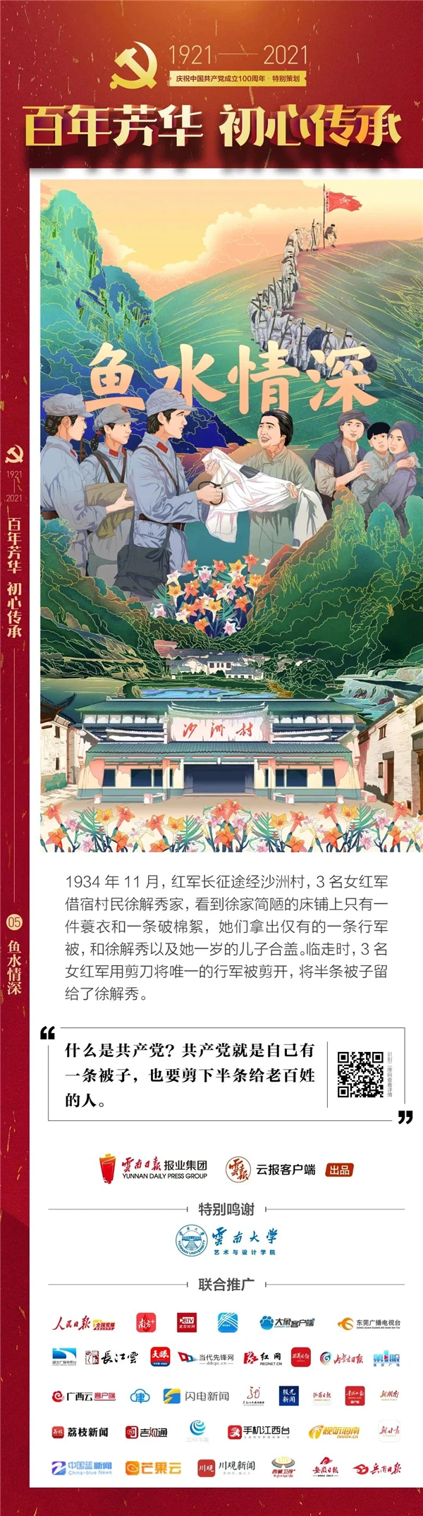 多年来,“半条被子的故事”感动了一代代人,共产党与百姓血浓于水的情谊也代代相传。
