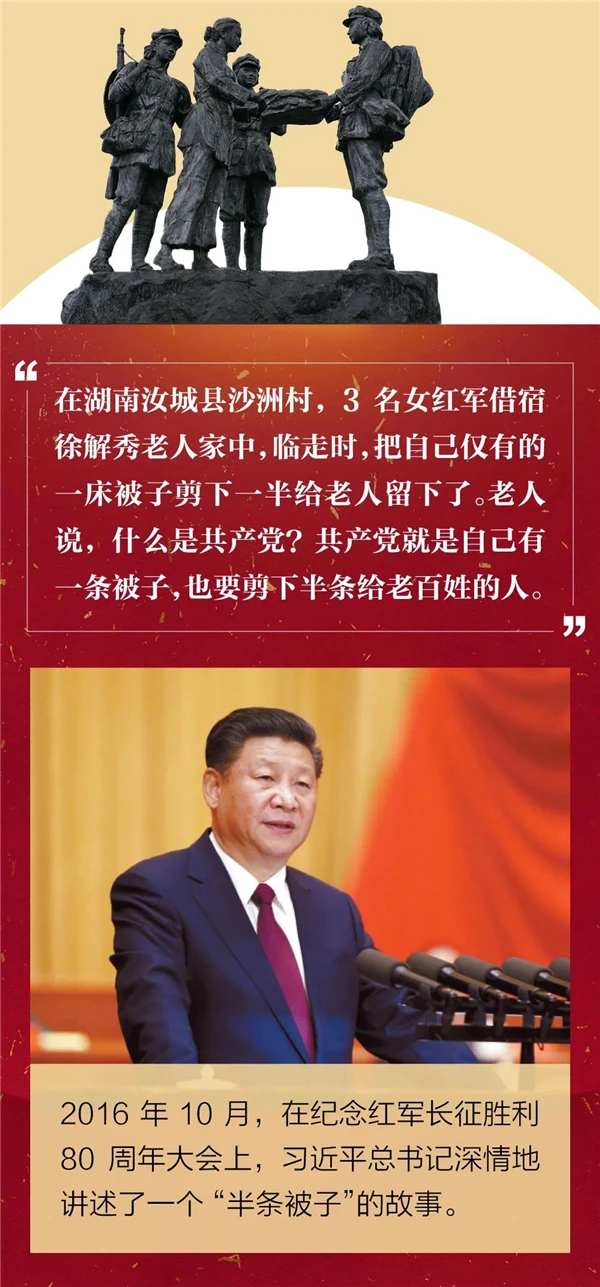 一部红军长征史,就是一部反映军民鱼水情深的历史。习近平总书记曾多次提到“半条被子的故事”。