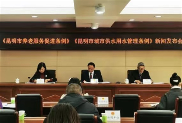 12月9日,昆明市人大常委会举行新闻发布会,公布经昆明市第十四届人民代表大会常务委员会第四十次会议通过,并经云南省第十三届人民代表大会常务委员会第二十七次会议批准的《昆明市养老服务促进条例》《昆明市城市供水用水管理条例》。