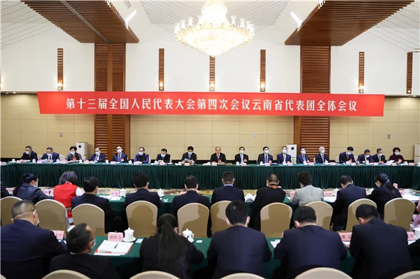 3月4日下午,出席第十三届全国人民代表大会第四次会议的云南省代表团举行全体会议。