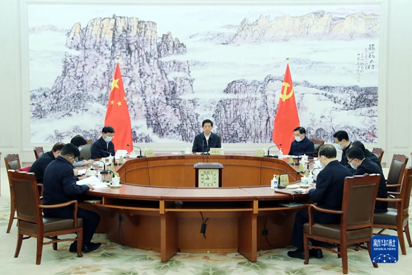 11月12日,中共全国人大常委会党组举行会议,传达学习习近平总书记在党的十九届六中全会上的重要讲话和全会精神。中共中央政治局常委、全国人大常委会委员长、党组书记栗战书主持会议并讲话。新华社记者 姚大伟 摄