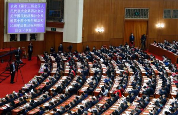3月11日下午,在全体代表前期认真审查、充分酝酿的基础上,第十三届全国人民代表大会第四次会议表决通过决议,批准了《国民经济和社会发展第十四个五年规划和2035年远景目标纲要》。会后,由新华社受权发布。至此,这份体现党中央决策部署、凝聚全国人民集体智慧和美好愿望的规划纲要正式颁布实施,具有法律效力,将为未来五年的经济和社会发展工作提供有力指引。