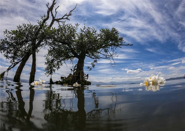 海菜花是大理白族“海菜芋头汤”的主料,曾遍布洱海水面。海菜花生长需要优良的水质,浑浊的水体环境和水质富营养化都会限制海菜花的生存。