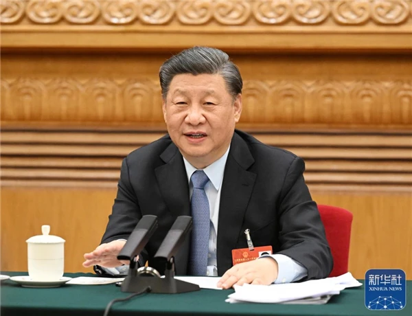 3月5日,中共中央总书记、国家主席、中央军委主席习近平参加他所在的十四届全国人大一次会议江苏代表团审议。新华社记者 黄敬文 摄