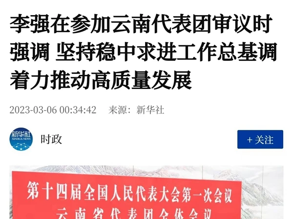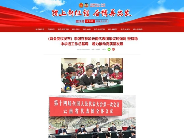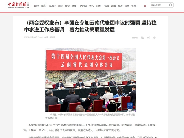 人民日报、新华社、新华网、中国新闻网等媒体对中共中央政治局常委李强5日下午来到他所在的云南代表团,同代表们一起审议政府工作报告相关内容进行了报道。