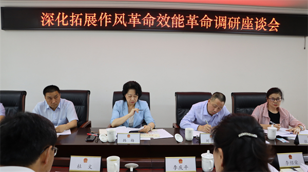 调研组在晋宁区人大常委会召开座谈会,听取作风革命效能革命开展情况汇报,与当地干部、人大代表进行交流。