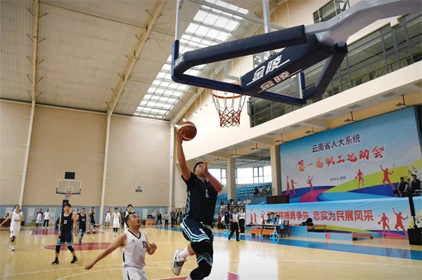 运球奔跑,步伐矫健。篮球赛场上,运动员们默契配合,迎“篮”而上。乔雪飞 秦楷第 张晰 杨海然 摄