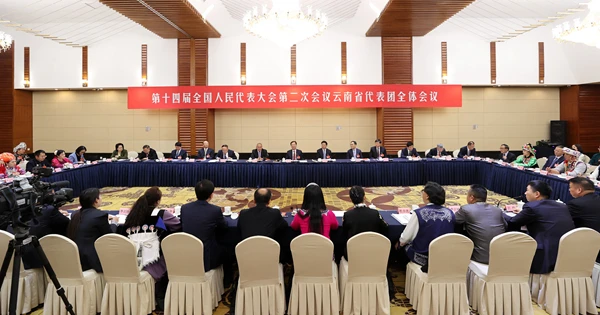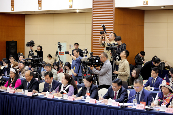 3月10日上午,参加十四届全国人大二次会议的云南省代表团举行全体会议,会议向媒体开放,42家境内外媒体的91名记者聚焦云南,深入了解云南高质量跨越式发展新成效,感受中国式现代化给边疆各族人民带来的巨大影响和深刻变化。