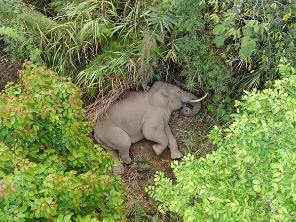亚洲象在江城境内活动画面 江城县融媒体中心 供图