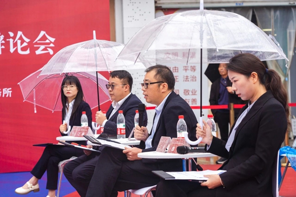 双方你来我往,在辩论中表达意见、寻求共识。这场社区辩论会,除了双方“辩手”,还邀请了街道与社区代表、青年观察员、法律专家、市区两级人大代表等列席旁听,并设置了现场交流、律师答疑等环节。