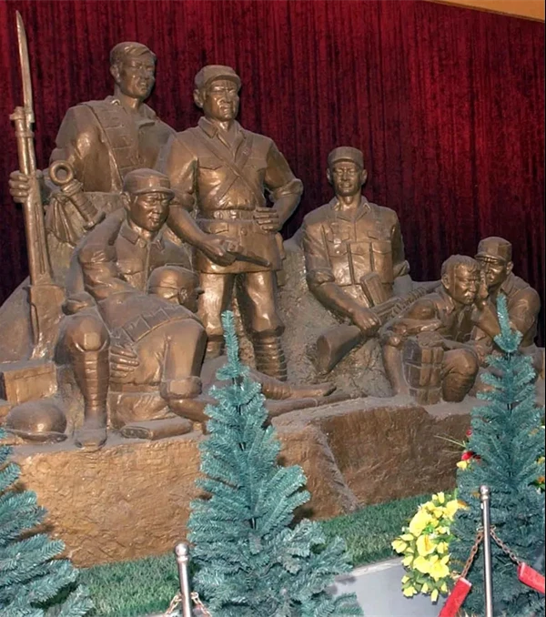 刘老庄烈士陵园纪念馆内的雕像。新华社 发