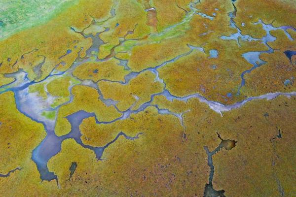 目光移至青藏高原东北部,蜿蜒的黄河静静流过若尔盖草原。由于黄河改道及冻土退化等原因,当地黄河沿线草原曾一度面临生态危机。