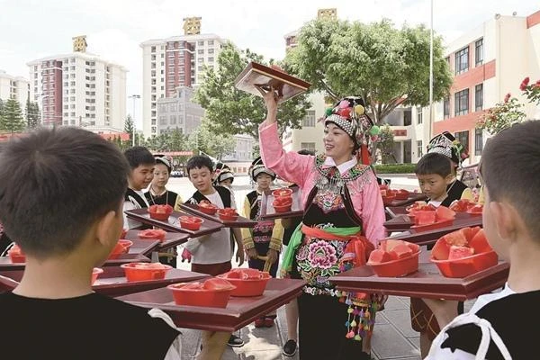 鲁丽华在助力乡村振兴方面有着自己的“妙招”。作为一名长期工作在乡村一线的文艺工作者,近年来,她不断扩大村里的非遗传承培训班规模,尝试吸引更多年轻人参与到非遗技艺传承中来。她每月到各中、小学开展常态化的教学,指导学生们“跳菜”、打歌,激发孩子们对非遗的兴趣。同时引导民间艺人将彝族跳菜、山歌等与农家乐、婚庆、旅游等市场结合起来,促进乡村文化繁荣,助力群众在家门口就业增收,全面助力乡村振兴。鲁丽华说:“希望通过自己的努力,能够让彝族跳菜这一宝贵的文化遗产动起来、用起来、火起来,以文艺力量助力乡村振兴。”(适志宏)