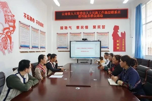 省人大常委会以此为遵循先行先试,今年4月依托石林彝族自治县长湖镇、鲁甸县桃源回族乡、河口瑶族自治县桥头苗族壮族乡、宁洱哈尼族彝族自治县磨黑镇、洱源县三营镇、陇川县、福贡县鹿马登乡亚坪村、德钦县、沧源佤族自治县的人大代表工作站(室)、代表之家,挂牌9个人大民族工作基层联系点,覆盖彝族、回族、苗族、白族、哈尼族、佤族、藏族、独龙族等多个民族聚居区,构建起边疆与内地统筹、县乡村三级覆盖的合理布局。