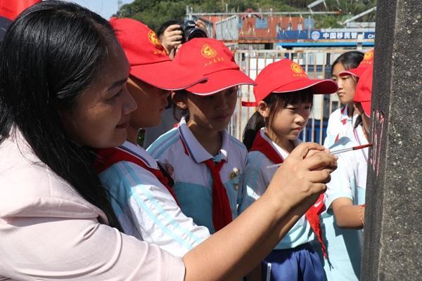 在167号界碑前,李瑞芳指导学生代表为“中国”字样与编号描红,传递对祖国山河的敬畏之情。她轻声寄语:“每一笔描红,都是对祖国的承诺;每一次凝望,都是对家园的守护。”随后开展的“界碑前的誓言”主题宣讲,用庄重仪式感定格了少年与祖国山河的珍贵联结。