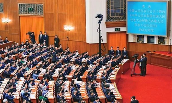 图为2025年3月11日,十四届全国人大三次会议表决通过全国人民代表大会关于修改《中华人民共和国全国人民代表大会和地方各级人民代表大会代表法》的决定草案。 新华社记者 刘大伟 摄