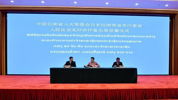 省人大常委会与南塔省、丰沙里省人民议会签署友好合作备忘录。秦楷第 摄