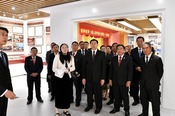 老挝北部四省人民议会友好代表团参观“云南人大发展历程”主题展厅。秦楷第 摄
