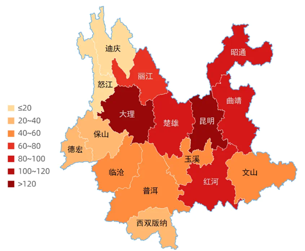 从地区分布看,滇中、滇西地区代表建议数量较多。建议数量排名前五位的代表团依次是昆明市、大理州、楚雄州、曲靖市、昭通市。