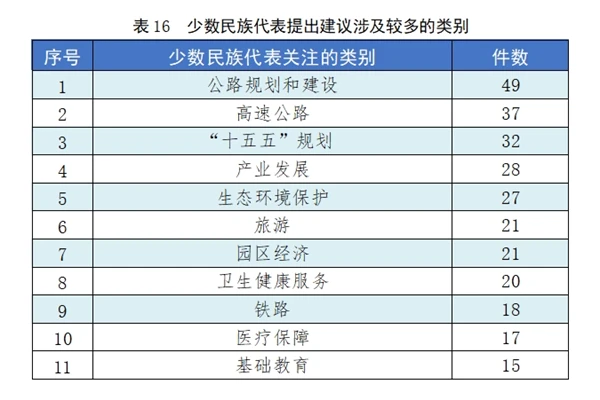 少数民族代表提出建议涉及较多的类别
