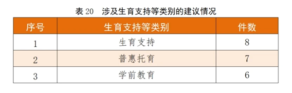 涉及生育支持等类别的建议情况