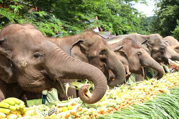 亚洲象享受节日大餐。戴振华 摄