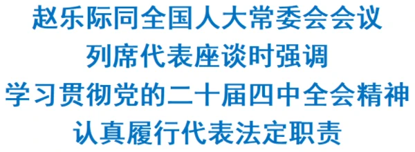 赵乐际强调,要积极宣传宣讲、带头贯彻落实党的二十届四中全会精神,带动周围群众团结奋进,推动全会部署要求在本地区本行业本单位落实见效。要继续加强思想、政治建设,模范遵守宪法法律,弘扬正风正气,勤勉尽责、廉洁自律,展现新时代人大代表的风采。
