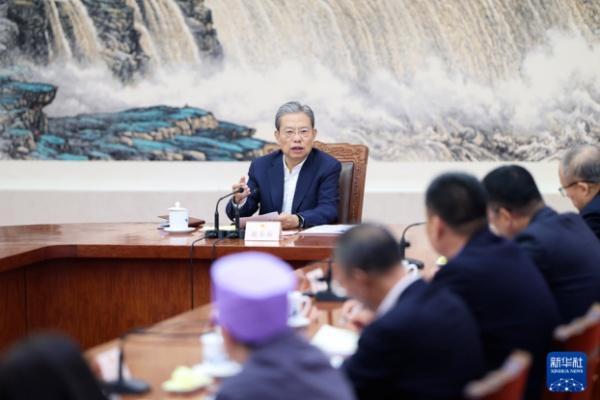 10月27日下午,中共中央政治局常委、全国人大常委会委员长赵乐际同列席十四届全国人大常委会第十八次会议的全国人大代表座谈交流。新华社记者 刘彬 摄