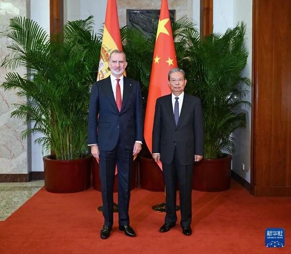 全国人大常委会委员长赵乐际12日下午在北京会见西班牙国王费利佩六世。