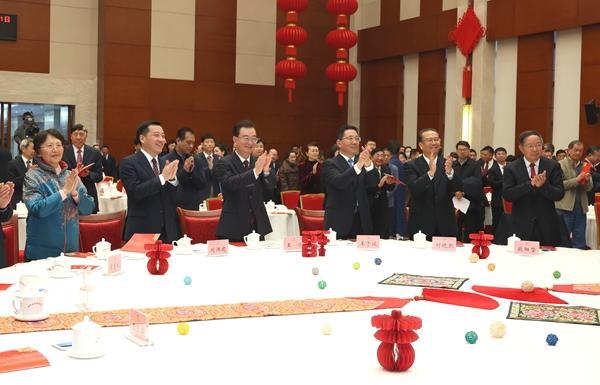 省政协礼堂温馨喜庆,大红的中国结布置在会场四周,洋溢着新年的欢乐气氛。