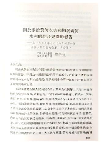 一届全国人大二次会议听取《关于根治黄河水害和开发黄河水利的综合规划的报告》。