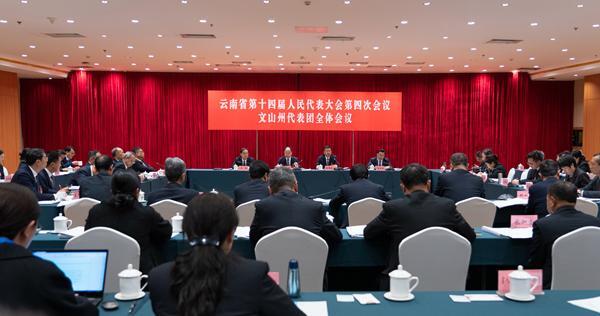 1月31日,出席省十四届人大四次会议的文山代表团召开全体会议,继续审议省人大常委会工作报告和省高级人民法院工作报告、省人民检察院工作报告。秦楷第 摄