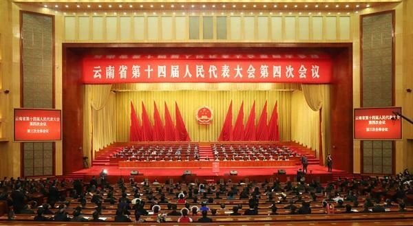 2月1日上午,云南省第十四届人民代表大会第四次会议举行第三次全体会议。