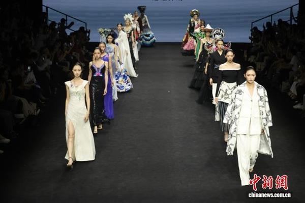 2025年9月8日,在北京举行的中国国际时装周(秋季)上,云南楚雄彝绣服饰亮相。中新社记者 蒋启明 摄