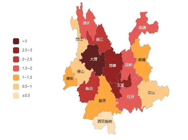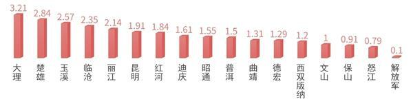 从地区分布看,代表建议人均数量在滇中地区相对集中。从代表团来看,代表建议人均数量呈梯次分布。