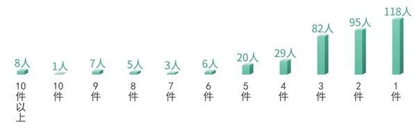 从代表提出建议情况(联名提出的按领衔代表统计)来看,提出1至5件建议的代表344名,提出6至10件的代表22名,提出10件以上的代表8名。