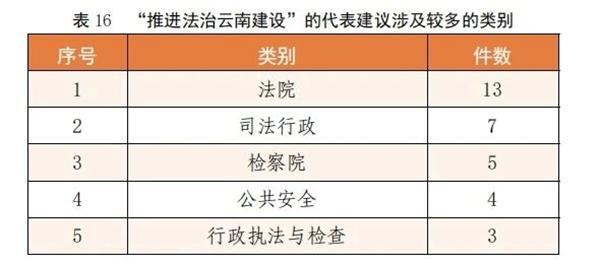 该方面建议共33件,占总数的3.1%。其中“法院”“司法行政”“检察院”“公共安全”“行政执法与检查”等类别建议较多。
