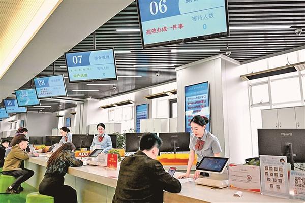 在内蒙古鄂尔多斯市东胜区政务服务中心,工作人员办理民营企业相关业务。新华社发