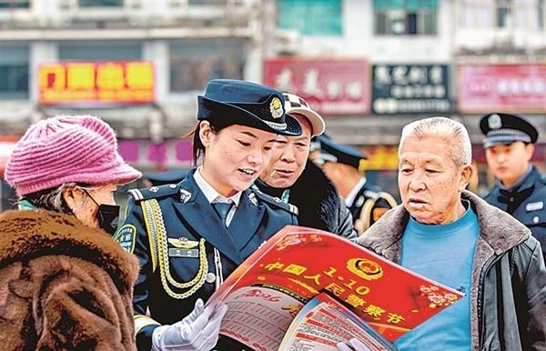 警察在贵州省黔西市水西广场为市民宣传法律知识。新华社发