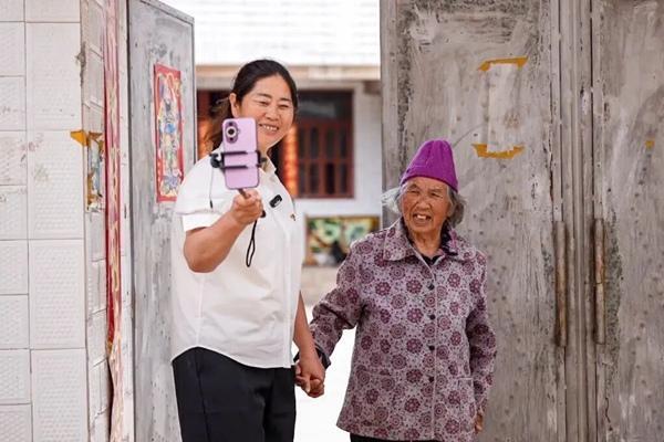 云南省人大代表马文翠(右)通过手机短视频记录联系群众听取民意过程。