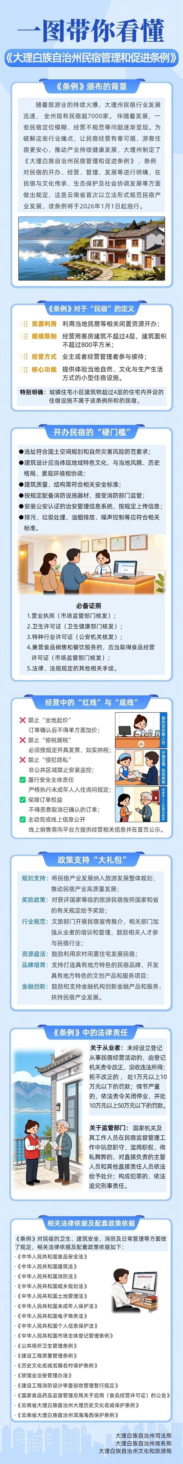 《大理白族自治州民宿管理和促进条例》2026年1月1日起施行,《条例》的重点是什么?一图看懂!