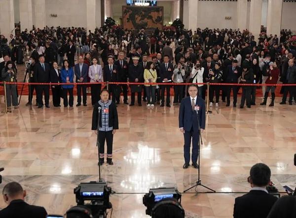 2026年3月5日,第十四届全国人民代表大会第四次会议首场“代表通道”集中采访活动在北京人民大会堂举行。新华社记者 王曦 摄
