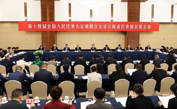 3月3日下午,出席第十四届全国人民代表大会第四次会议的云南省代表团举行全体会议。
