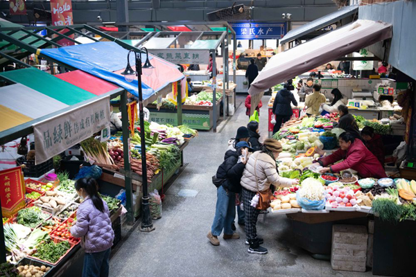 在安徽省合肥市庐阳区四湾菜市,市民在选购蔬菜(2026年3月11日摄)。新华社记者 张端 摄