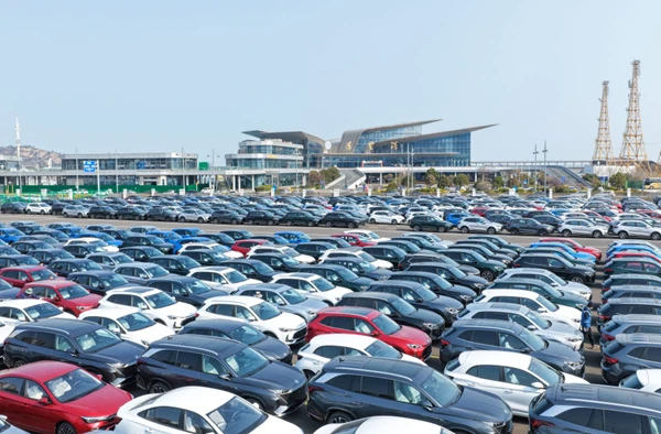江苏省连云港港出口汽车堆场(2026年3月10日摄,无人机照片)。新华社发(王健民 摄)