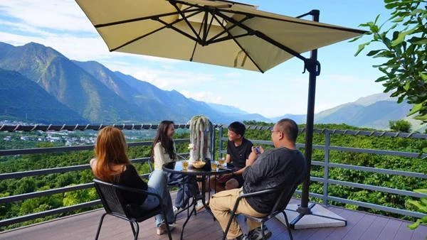 游客在新寨村的咖啡庄园品尝咖啡。李建国 杨艳鹏 摄