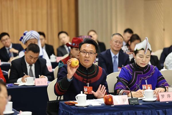 3月7日,出席十四届全国人大四次会议的云南省代表团举行集中审议,会议向境内外媒体开放。陈飞 胡妤雅 摄