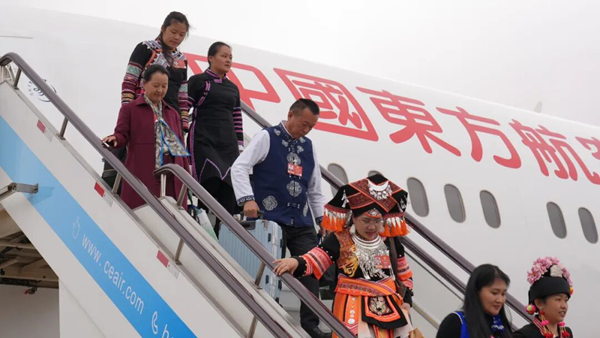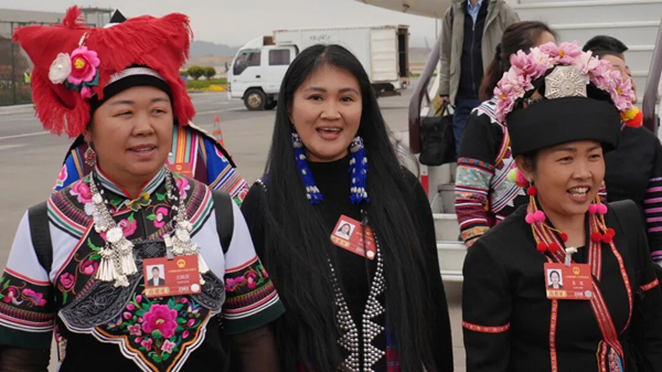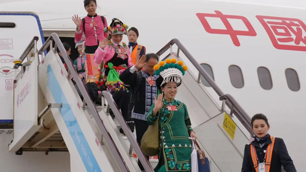 3月13日,赴京出席十四届全国人大四次会议的在滇全国人大代表,圆满完成各项议程后,乘机从北京返回云南昆明。